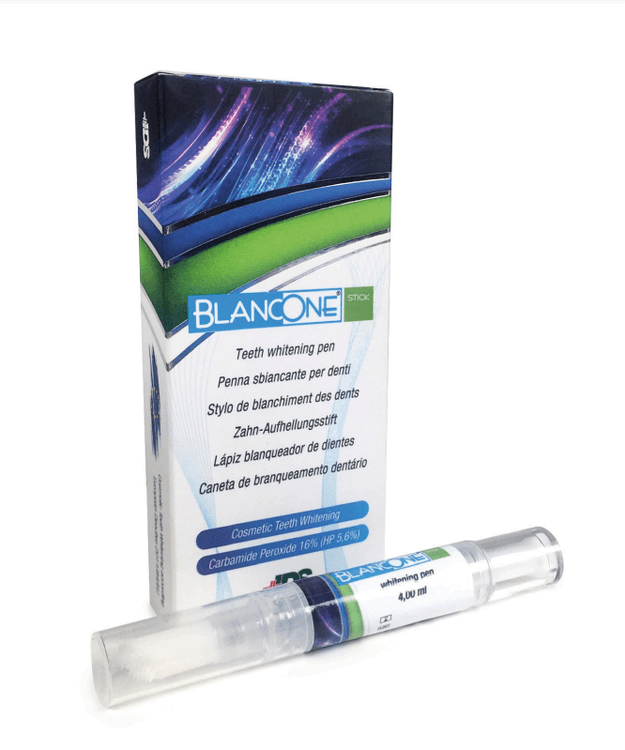 BlancOne STICK — это отбеливающий карандаш, который идеально подходит для удаления пятен от никотина, кофе, чая, пигментирующих продуктов питания и напитков, а также для сохранения результатов профессионального отбеливания в клинике в течение более длительного времени. В состав ручки входит отбеливающий гель на основе 16% перекиси карбамида (5,6% перекиси водорода). Позволяет бережно, без абразивного воздействия, очищать поверхность зубов, растворять биопленку зубного налета и одновременно быстро активировать перекисный гель, высвобождая активный кислород. Можно смывать проточной водой для лучшей гигиеничности изделия.